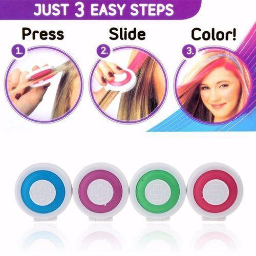 Pack Of 4️⃣ - Temporary Hair Colour Chalks - Get Colorful in Minutes:temporary hair color, hair chalks, non-toxic, easy to use, washable, vibrant colors, pop of color, mix and match, safe for all ages.