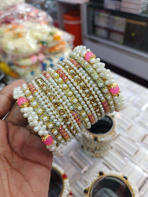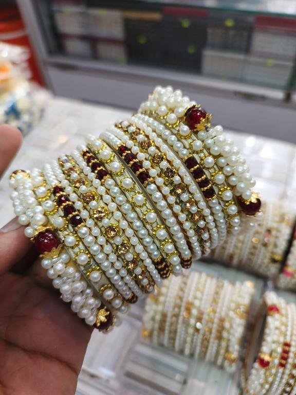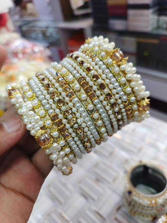 Add sophistication to your attire with our crafted Pearls and Crystal Bangle Set. Designed for both casual and festive occasions, these bangles radiate elegance.
