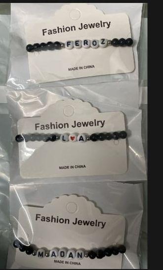 Express your individuality with this Custom Black Bead Bracelet. This piece combines elegance with the ability to personalize, allowing you to wear a meaningful name or phrase.