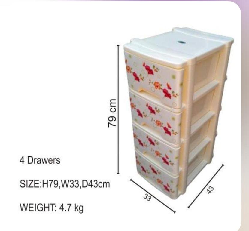 The Multi-Purpose Storage Cabinet features four durable drawers made from high-quality plastic. This versatile storage solution helps you organize your space effectively, making it ideal for decluttering areas in your home.