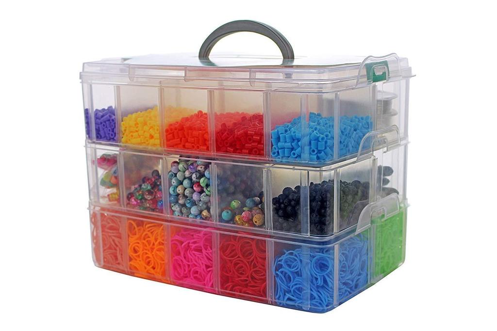 The first two layers come with grids for organized sorting, while the last layer is plain for larger items.