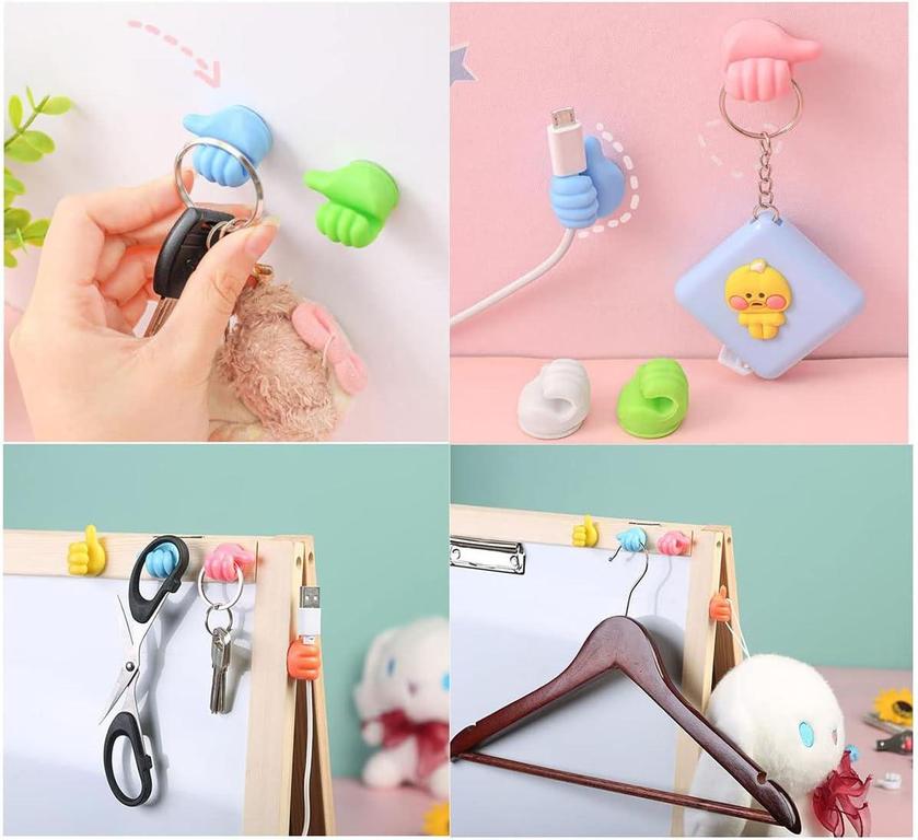 This pack contains 10 self-adhesive thumb hooks suitable for various everyday needs in your home or office. Each hook measures 2 x 2 cm (0.8 x 0.8 inches), making them compact and effective for managing cables and organizing your space.