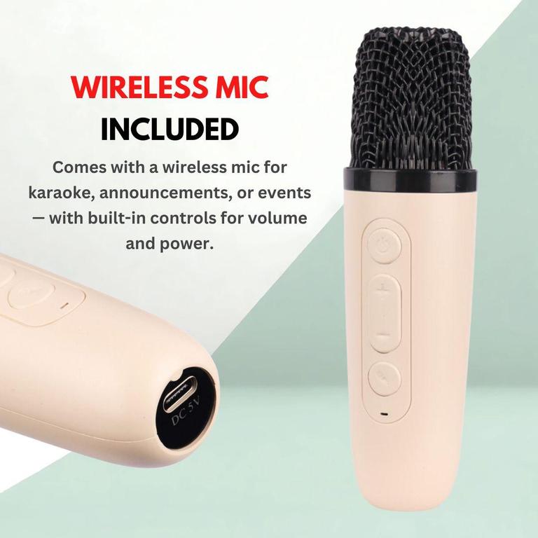 - Complete Package - Includes: 1× Speaker, 1× Wireless Mic, 1× Charging Cable — ready to use!
