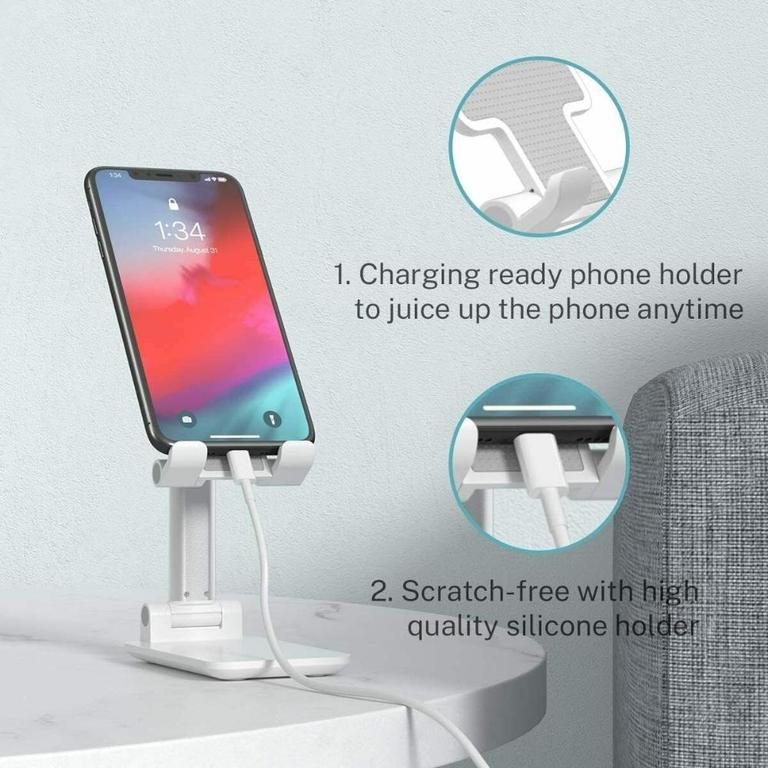 Fully covered top silicone pads and metal weighted anti-slip base will protect your devices from scratches and sliding, easily tap the screen without worrying the phone will tip over or fall off.