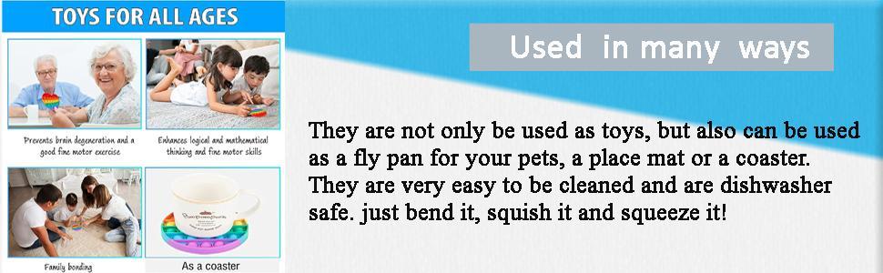 - 【USE THEM IN MANY WAYS】They are not only be used as toys, but also can be used as a fly pan for your pets, a place mat or a coaster. They are very easy to be cleaned and are dishwasher safe. just bend it, squish it and squeeze it!