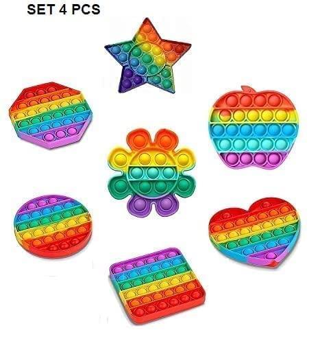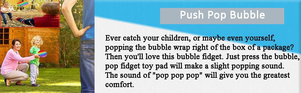- 【PUSH POP BUBBLE】 Ever catch your children, or maybe even yourself, popping the bubble wrap right of the box of a package? Then you'll love this bubble fidget. Just press the bubble, pop fidget toy pad will make a slight popping sound. The sound of "pop pop pop" will give you the greatest comfort. 4 shapes circle, square, octagon, and heart with rainbow color.