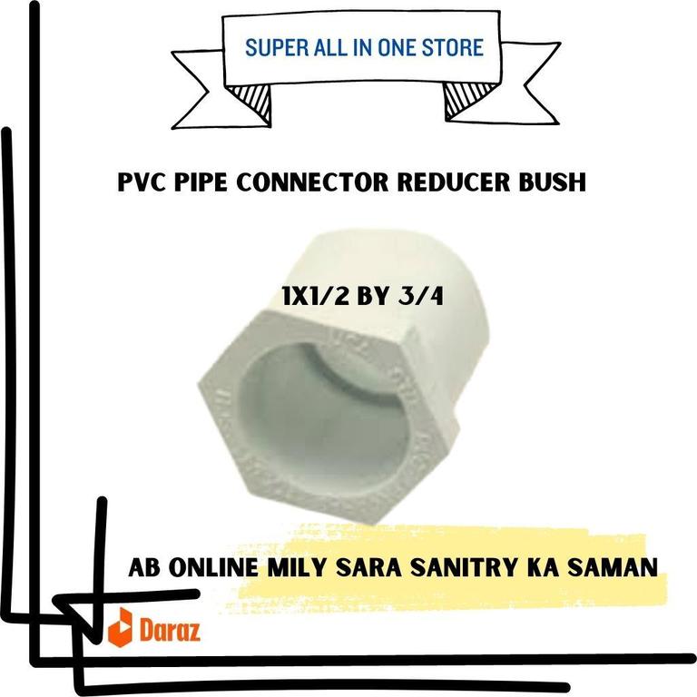 PVC Connection Bush Sizes 1/2" x 3/4", 3/4" x 1", 1" x 1/4", 1" x 3/4", 1" x 1/2", 1 1/2" x 1/2", and 1 1/2" x 3/4"