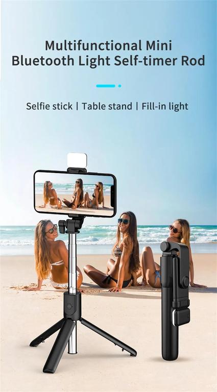 R1s Bluetooth Selfie Stick with Remote and LED Light - 3-in-1 Tripod Stand for All Phones with 360° Rotation