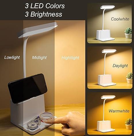 This portable rechargeable LED desk lamp is ideal for studying, working, or traveling. It features a built-in pencil holder and a flexible gooseneck design for customized lighting.