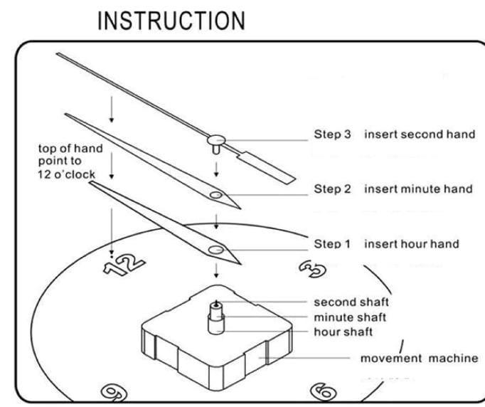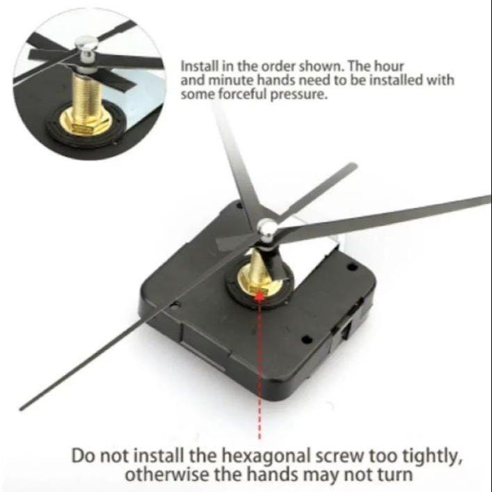 - Pakege include one machine, 1 x Hour Needle, 1 x Minuete Needle, 1 x Seconde Needle and Nut and washer.