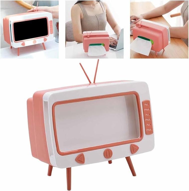 This multifunctional tissue box cover not only holds tissues but also features a mobile phone holder. It is designed for both home and office use.
