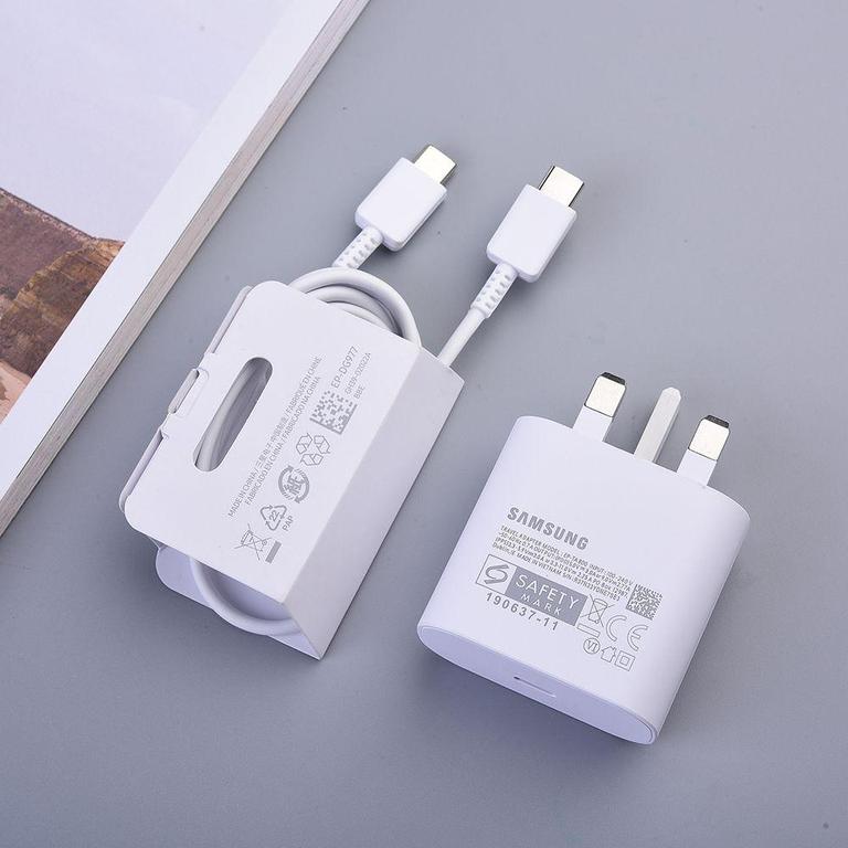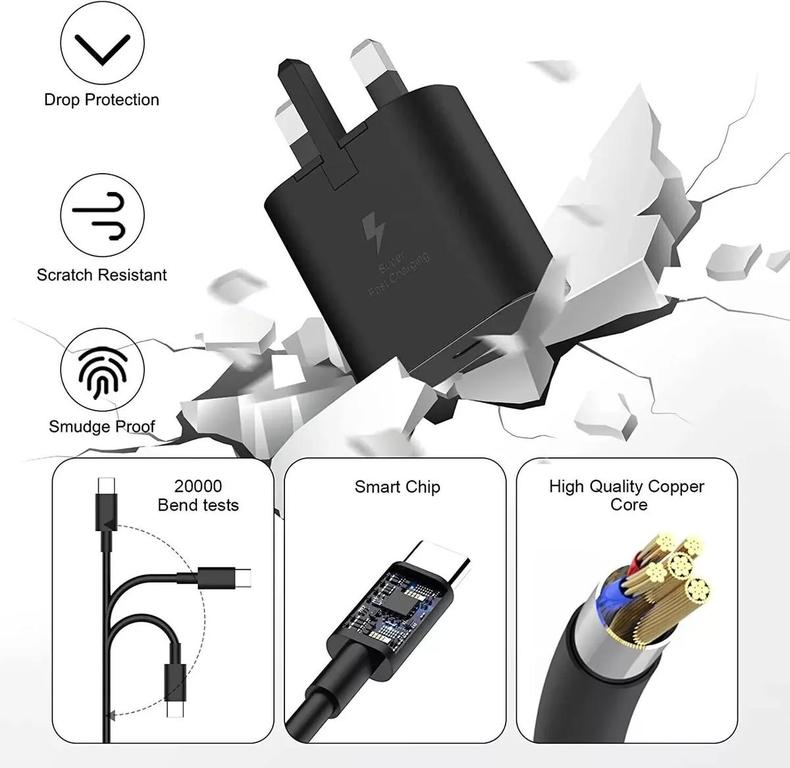 Samsung 25W Super Fast Charger with UK Plug and USB Type C Cable for Galaxy Z Flip, Fold, S24, S21, and Note Series