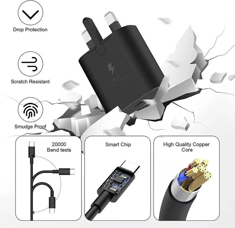 Samsung 25W UK Plug Super Fast Charger with USB Type-C Cable for Galaxy Z Flip, Fold, S Series, and Note Models