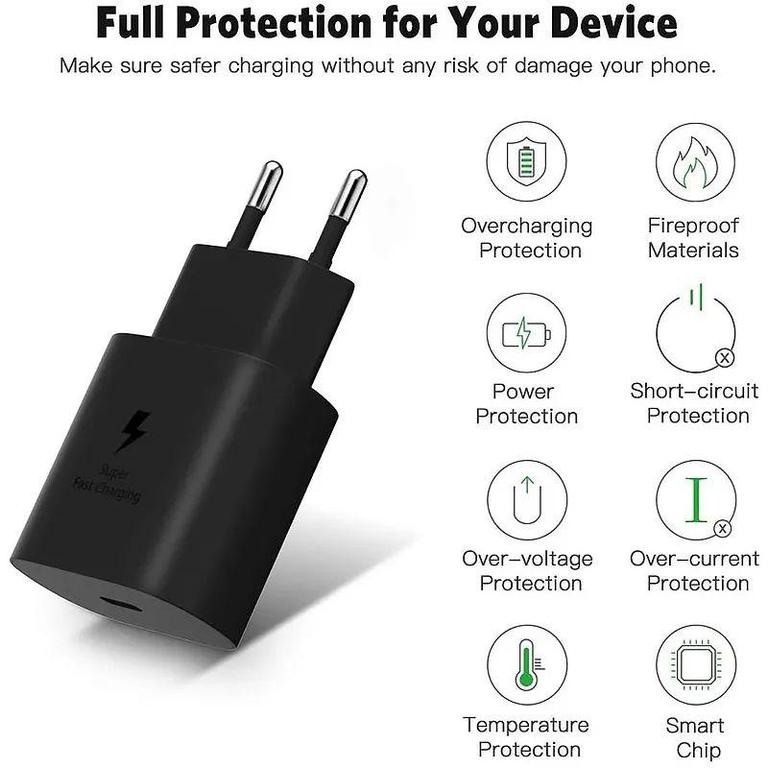 Samsung Galaxy S21/S20 25W Super Fast Charger with Double USB Type-C Cable for Note 20 Ultra and Note 10