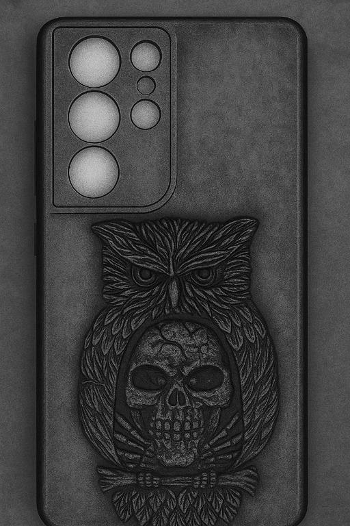 Samsung Galaxy S22 or S23 Ultraphone case for Galaxy S22 or S23 Ultra, featuring a carved owl design.