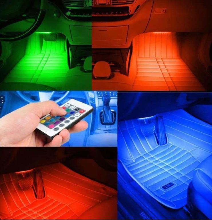 Semaphore 4-Piece Adjustable LED Car Interior Light Kit with Remote Control – 8 Colors