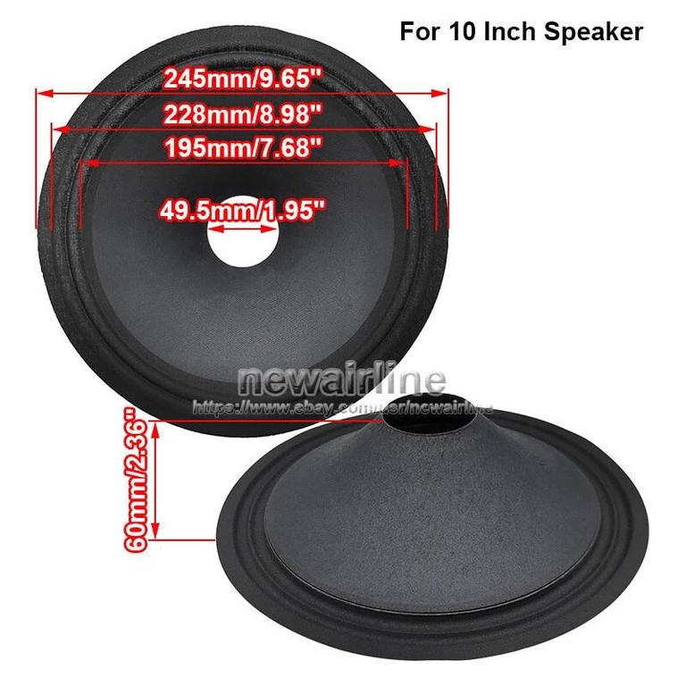 Set of 2 - 10" Speaker Cone with 49.5mm Core and 2-Ring Design