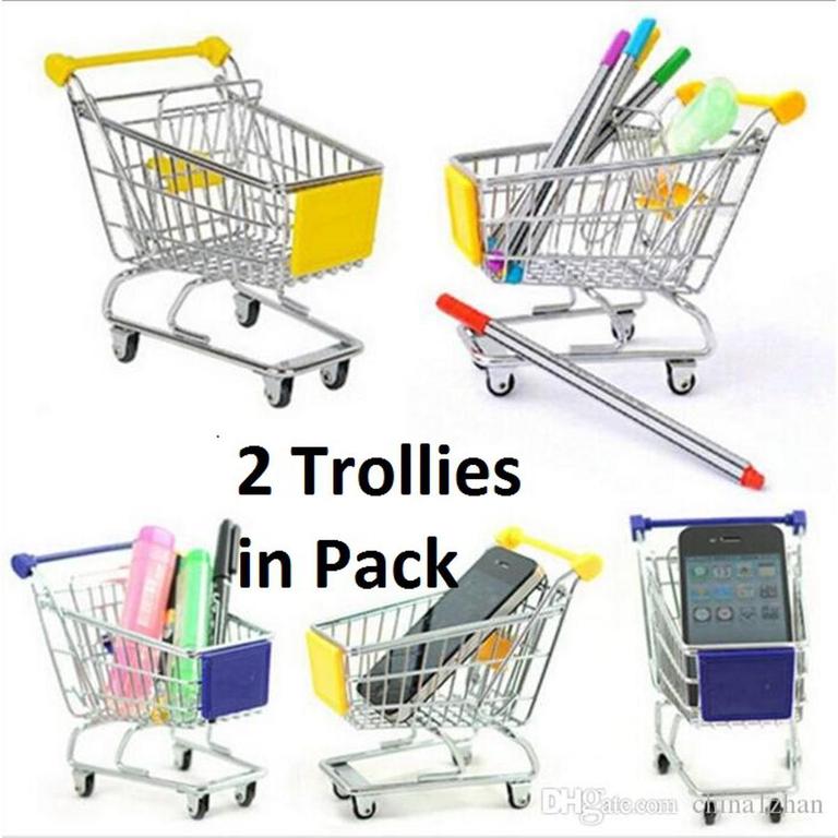 Set of 2 Mini Shopping Carts in Large and Small Sizes for Mobile Accessories, Pencils, and More