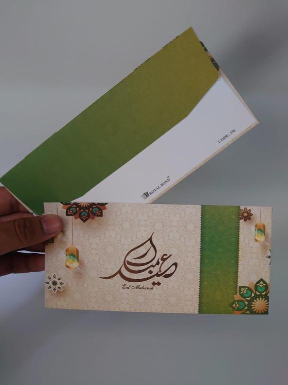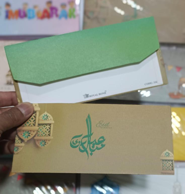 This set includes 20 high-quality paper envelopes perfect for Eid celebrations. Each envelope features a vibrant Eid Mubarak design that adds a festive touch.