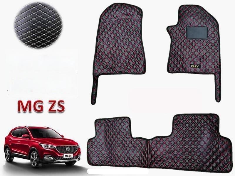 MG ZS 7D Echo Vinyle Floor Mat Set of 3pcs in Black with Red Cross Stitched | Floor Mats 3Pcs | 1Set