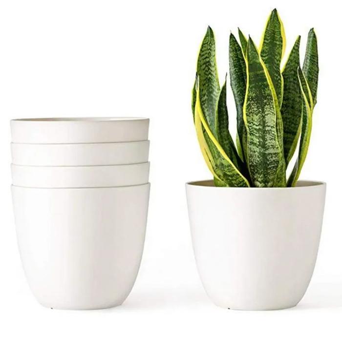 Set of 6 Small White Flower Pots for Cactus and Artificial Plants