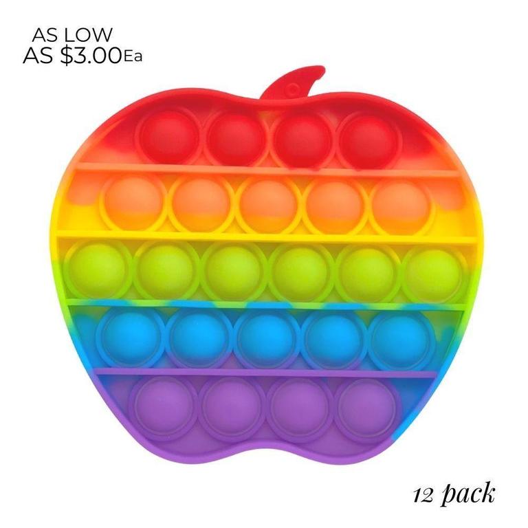 This Rainbow Apple Pop It Fidget Toy is designed to provide endless fun and relaxation. Its vibrant colors and engaging texture make it a favorite among kids of all ages. Crafted from quality silicone, it's built to withstand all kinds of play.