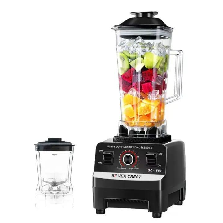 Introducing the Silver Crest SC-1589 PowerMix, a heavy-duty blender tailored for both home kitchens and commercial settings. This appliance boasts a robust 4500W motor and a 2L capacity jar, making it capable of handling everything from ice crushing to smoothie blending.