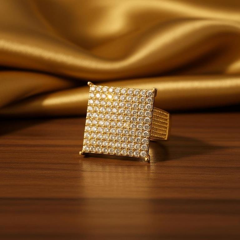 SINIMU – GOLD Grid Signet Ring | Pavé Square-Faced Adjustable
