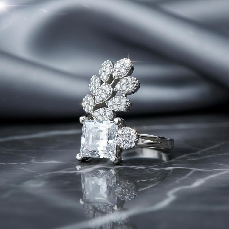 SINIMU – Regal Bloom Crest Ring | Square-Cut Adjustable