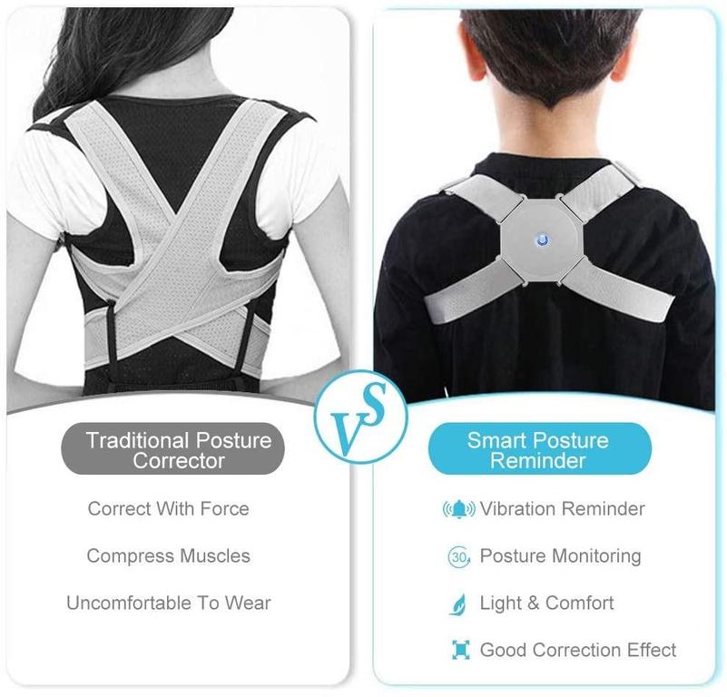 The smart posture corrector assists in correcting poor posture habits and helps relieve pain in the neck, back, and shoulders. It features an automatic memory function that detects incorrect posture and provides immediate vibration reminders to promote upright muscle habits.