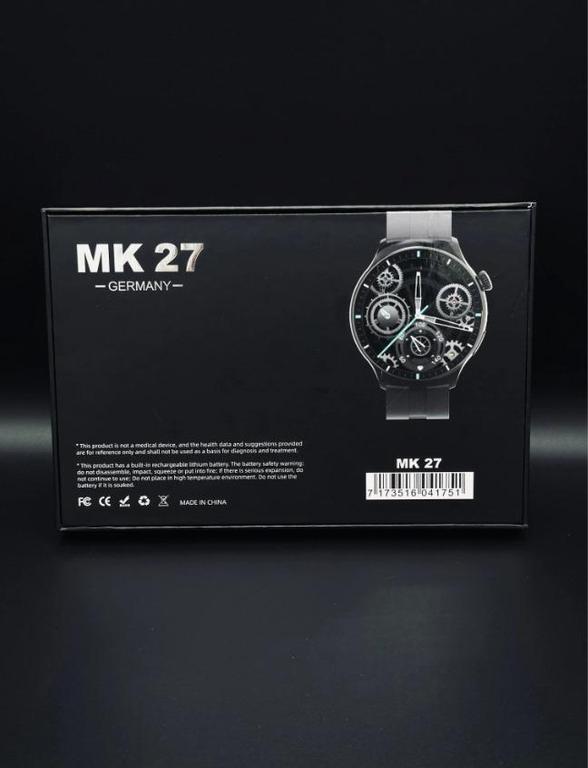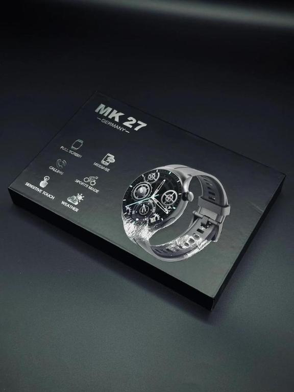 MK-27 German Smartwatch combines premium style with smart performance. Featuring a sleek design, HD display, and durable build, it offers fitness tracking, heart rate monitoring, call & message notifications, and multiple sports modes to keep you connected and active. With a long-lasting battery, comfortable strap, and advanced German technology, the MK-27 is the perfect mix of elegance and innovation for your daily lifestyle.