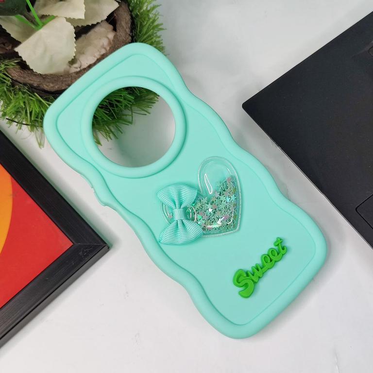 This soft silicon case for the Xiaomi Redmi 14C features a playful 3D love heart design with moving shiny stars and a cute bow. It is a sweet candy color that combines style and protection.