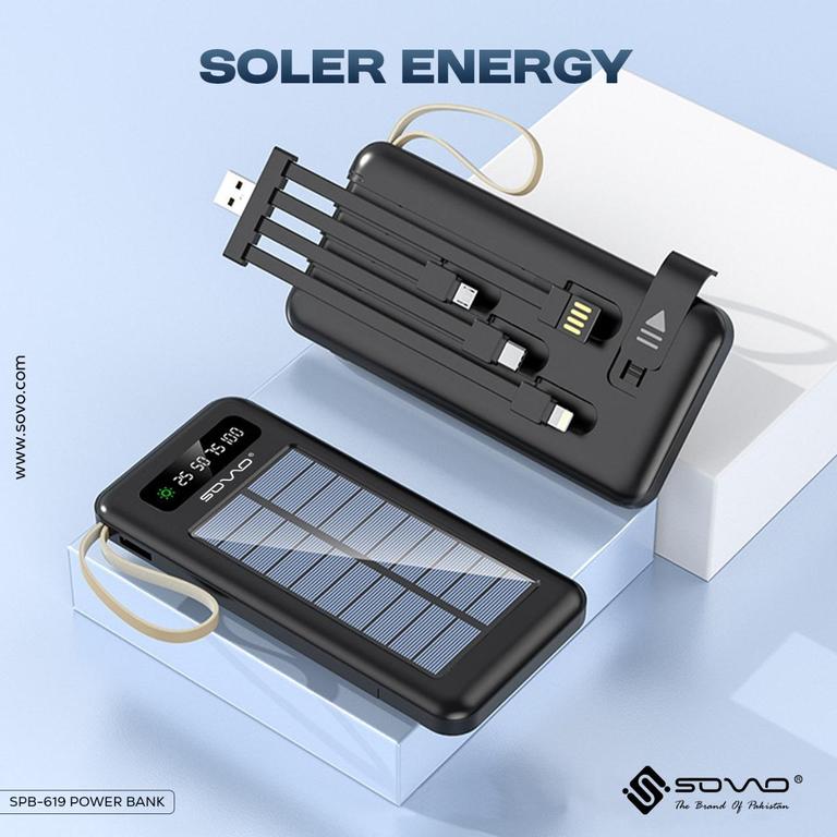 SOVO SPB-619 Solar Power Bank with 10000mAh Capacity and Digital Display