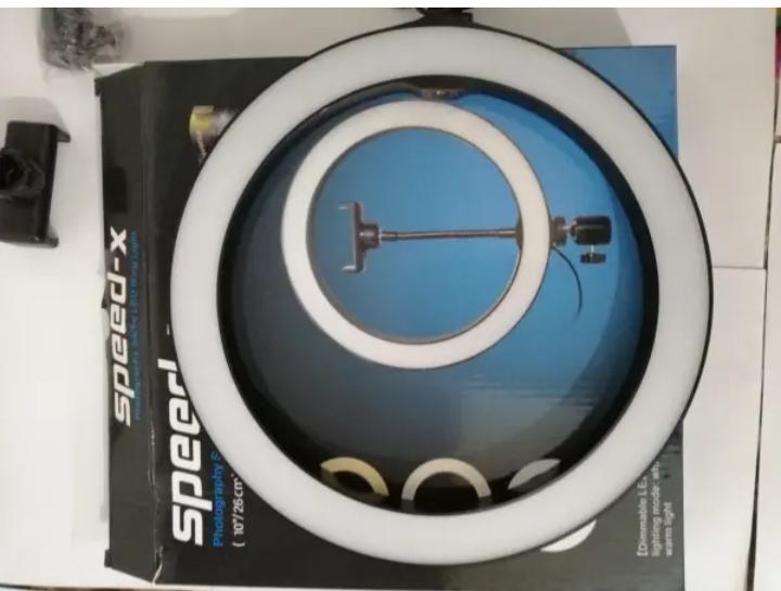The Speed-X 10 Inch LED Ring Light is tailored for creators aiming for high-quality lighting. It includes three color temperature modes and brightness adjustments suitable for any setting. Being USB-powered allows for simple connectivity, while the adaptable tripod and rotatable phone holder are ideal for live streaming and recording. This lightweight and durable ring light is easy to assemble and is crafted to help you shine in every frame.