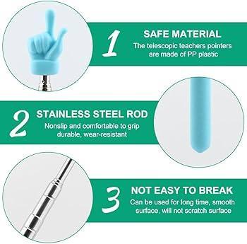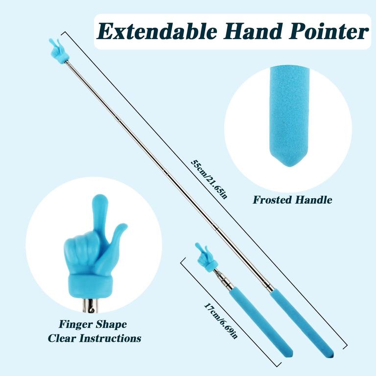 - 1. [Accompanying children in learning and growth] Clear and interesting finger instructions make children more focused on learning2. [Fun Design] Humanized design is more thoughtful and user-friendly, with a fun finger shape and a command stick that can be extended to 55cm. The frosted handle is more anti-skid3. [Reinforcement and groove design] Stainless steel groove reinforcement, more sturdy and durable4. [Polishing Round] Environmentally friendly material, round fingers, safer for babies to use5. [Scalable touch screen] Fine and smooth workmanship, without damaging the screenParameter:Material: stainless steel+PPLength: pulled out 55cm, closed 17cmColors: blue, black, pink, redPackage include:1 * Teaching baton