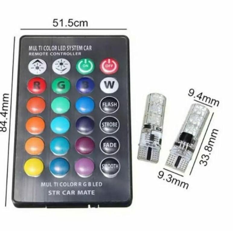 Enhance your vehicle's visibility and style with the T10 Multi LED RGB Bulb Parking Lights featuring remote control functionality. These lights allow you to switch colors and settings with ease, ensuring that your car stands out, whether parked or on the move.