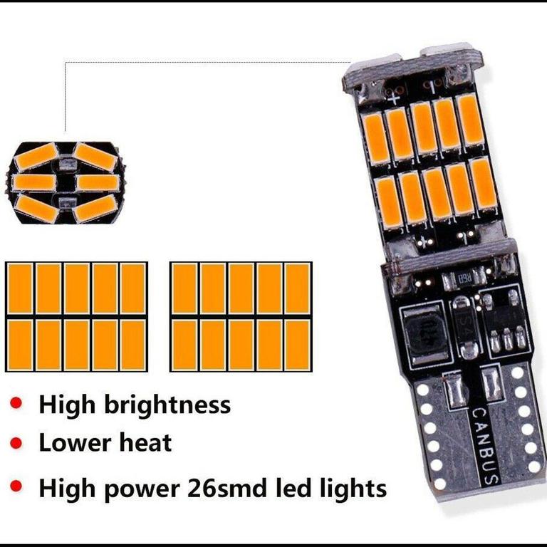 T10 W5W Amber Parking Lights - Canbus Error-Free - 1 Pair with 26 SMDs