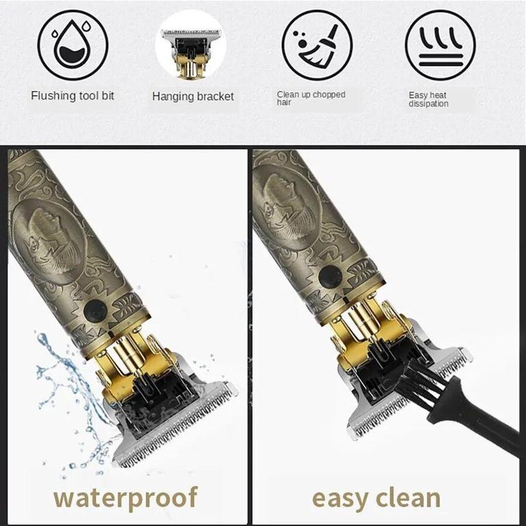 The T12 Professional Hair Clipper is designed for both barbers and home grooming enthusiasts. With its vintage engraving and sleek appearance, this clipper combines style and functionality.