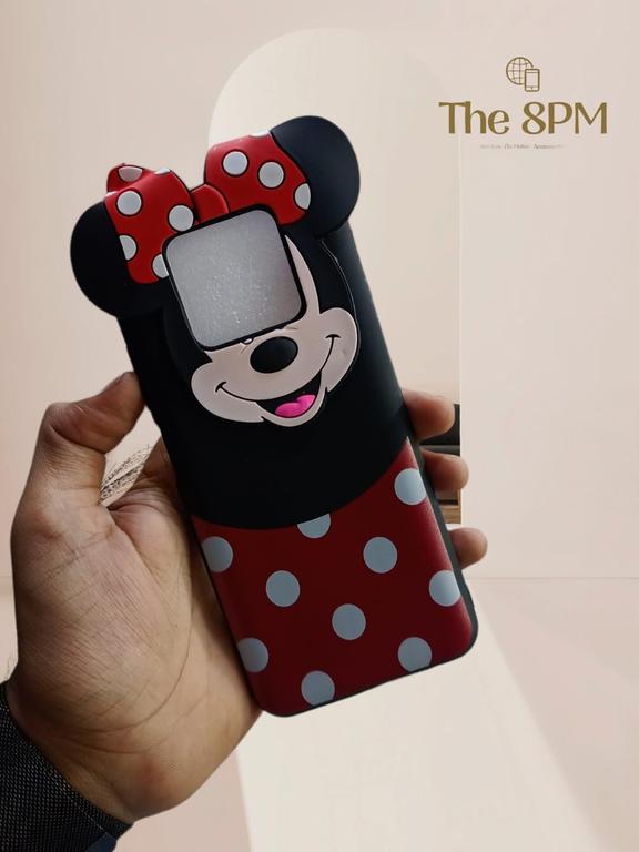 Tecno Camon 16 Premir Case features a charming design with Mickey Mouse and Hello Kitty, coupled with a convenient hanging chain for easy carrying.