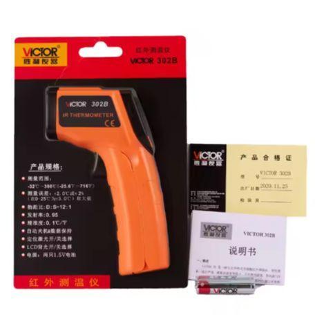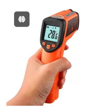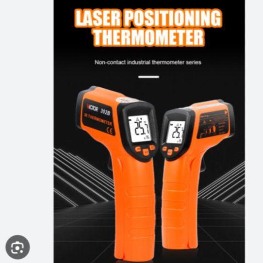 Thermometer is a professional hand-held, non-contact thermometer with a wide temperature range and high measurement accuracy. It uses a HEIMANN infrared temperature probe, providing precise and stable performance. Key features include laser aiming, LCD backlight, over-temperature alarm, and automatic shutdown.