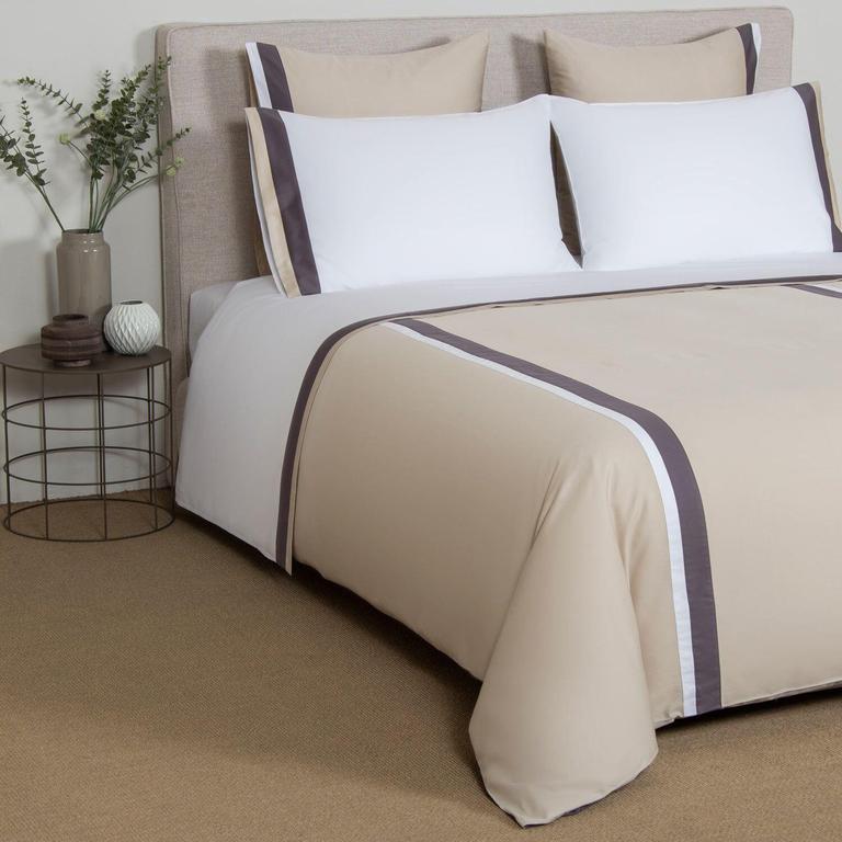 The Livingstone Duvet Cover and coordinating Shams feature a top panel of smooth cotton sateen with a contrasting stripe design