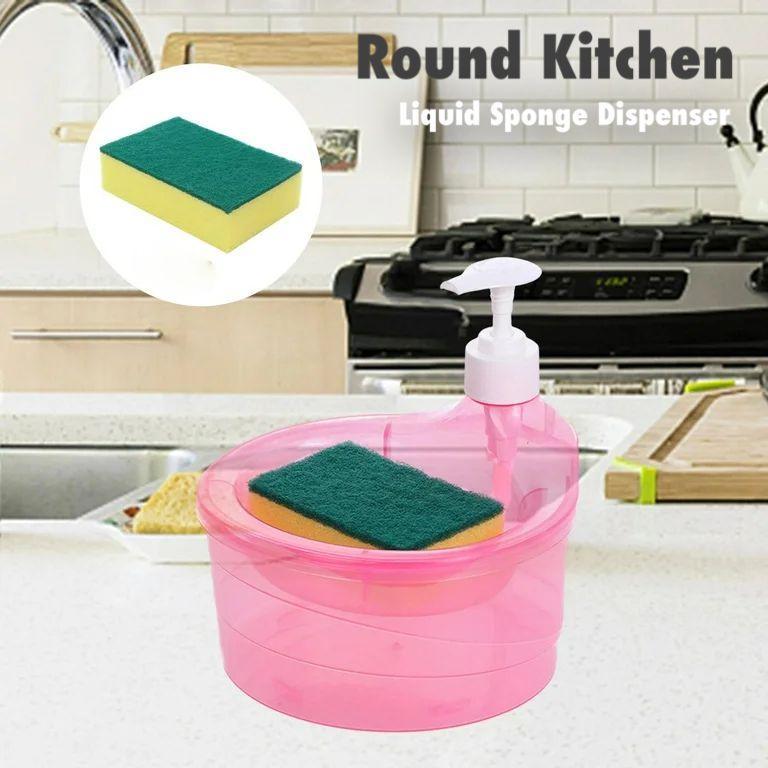 Transparent Round Kitchen Liquid Dispenser with Sponge (Mixed/Random Colors)