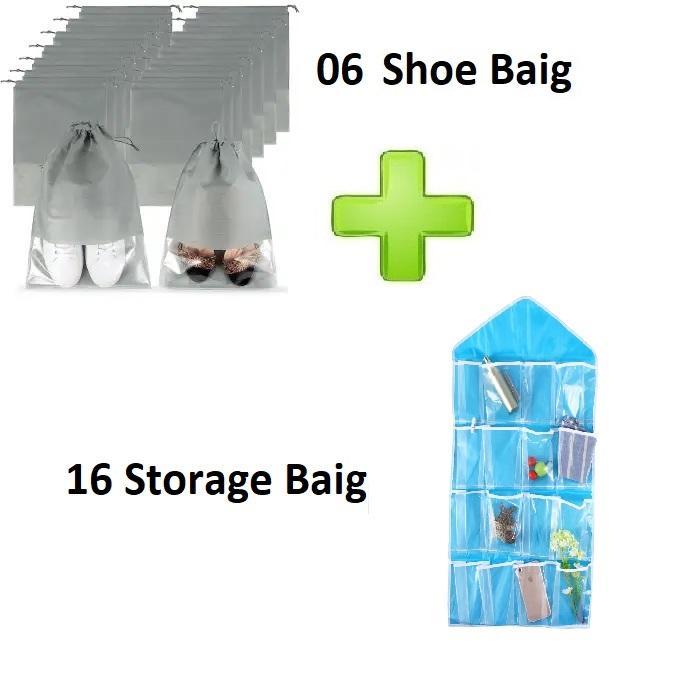 Travel Shoe Storage Bag Set of 6 with Clear Window and 16 Pocket Design