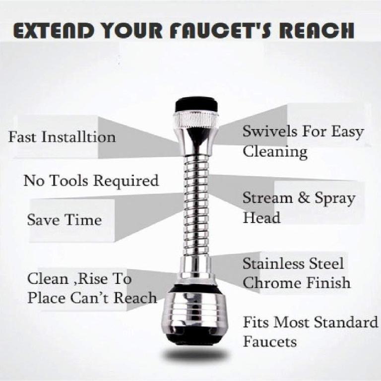 The Turbo Flex 360 provides a complete 360-degree range of motion and can be easily attached to most standard-sized faucets without any tools necessary.