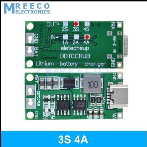 This charging circuit module is designed for 3.7V Li-ion and LiPo batteries with compatibility for 2S, 3S, and 4S configurations. Featuring a Type-C interface, it operates across an input voltage range of DC3-6V and provides output options of 8.4V, 12.6V, and 16.8V. Ideal for various DIY and outdoor projects, this compact module is suited for both hobbyists and professionals seeking reliable charging solutions.