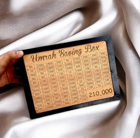 Enhance your savings approach with the Umrah Saving Box, designed from high-quality wood. This box offers structured slots to help you meet your saving goals effectively.