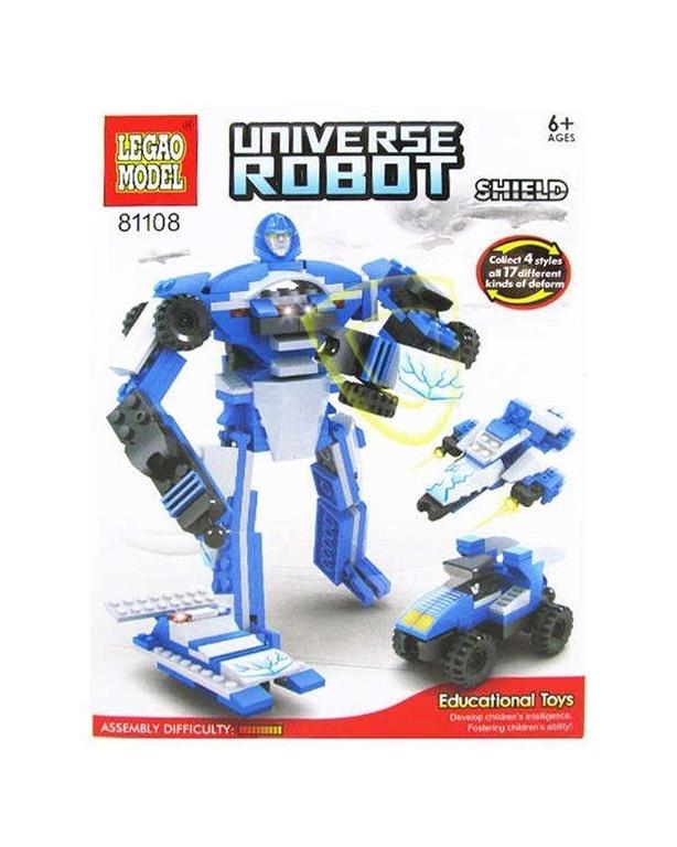 This building blocks set encourages creativity and intelligence in children. It includes four unique styles: Artillery, Anger, Shield, and Raid. The set is easy to assemble with the included instruction manual, allowing young builders to create various models such as robots, cars, and planes.