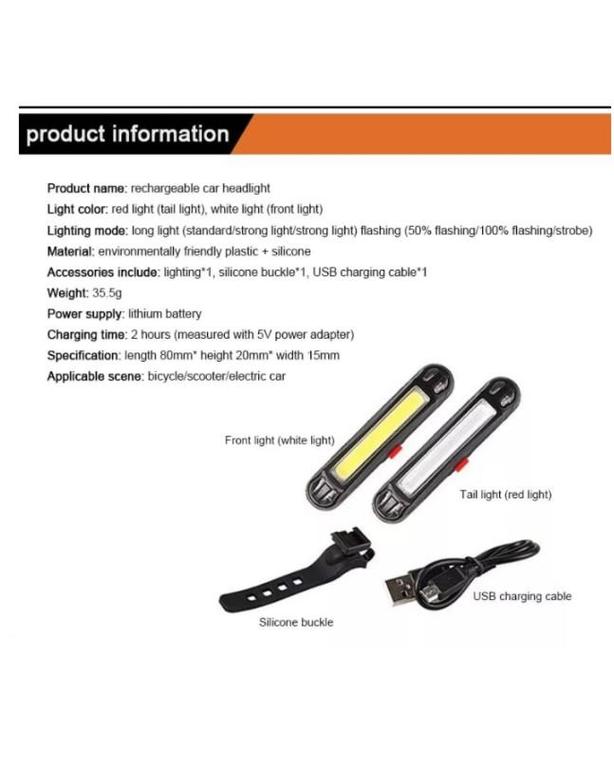 - Energy-Efficient COB Lamp: This bicycle tail light features a high-efficiency COB lamp, ensuring brightness without excessive energy use, powered by a 500mAh battery.