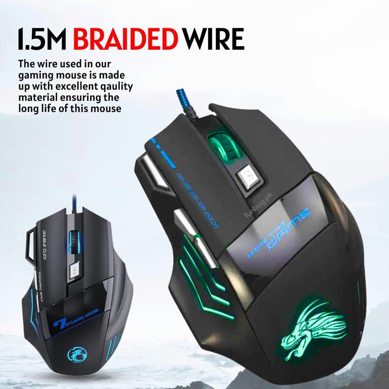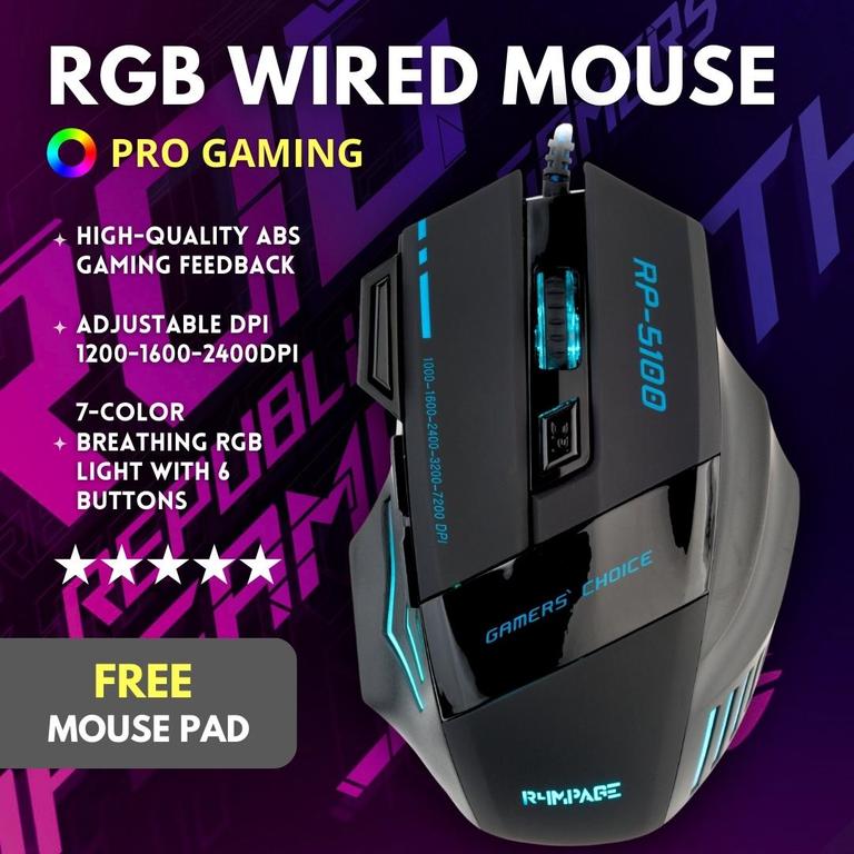 USB Wired RGB Gaming Mouse with 3200dpi - Optical Mouse with 6 Buttons and Braided Cable, Plus a Free Mouse Pad for Laptops, PCs, and Gaming