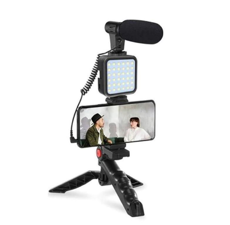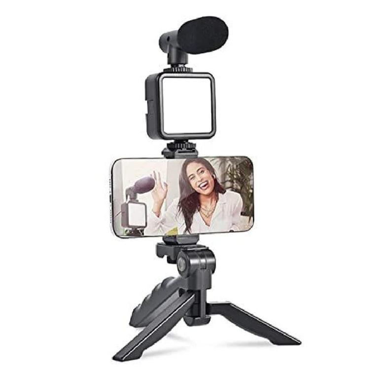 - All-in-One Vlogging Kit – Includes tripod stand, LED light, microphone, and mobile holder.